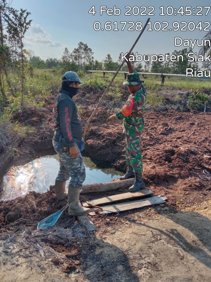 SIAK- Bintara Pembina Desa (Babinsa) Koramil 01/Siak Jajaran Kodim 0322/Siak bersama Bhabinkamtibmas dan Masyarakat Peduli Api(MPA) secara rutin melaksanakan Patroli dan sosialisasi Karhutla di wilayah binaannya. Seperti hal yang di lakukan Babinsa Koramil 01/Siak Serma Zamzami ini nelusuri yang rawan dengan kebakaran hutan diKampung Dayun, Kecamatan Dayun Kabupaten Siak. Jumat, 04 Februari 2022