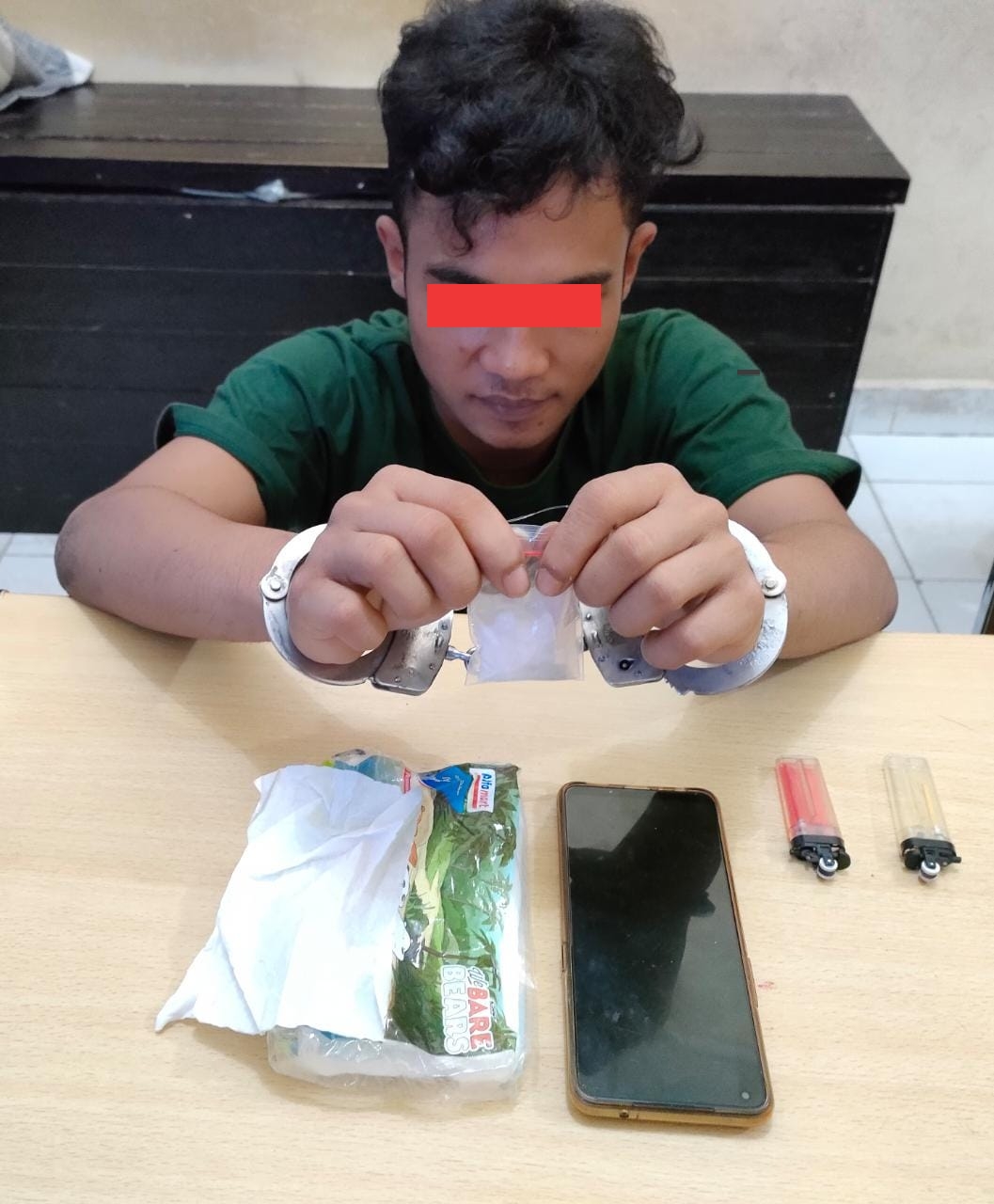 Pelaku narkoba yang diamankan Aparat Kepolisian ini adalah AS (24) warga Kampung Kuala Gasib Kecamatan Koto Gasib Kabupaten Siak, bersama pelaku turut diamankan barang bukti 1 ( satu ) bungkus paket Sedang diduga  Narkotika jenis shabu – shabu dengan berat kotor  4.12 Gram, 1 (Satu) bungkus Tisu wajah sudah terpakai merk WE BARE BEARS, 2 (satu) buah mancis warna minyak merah dan warna kuning tanpa merk, 1 (satu) buah handphone merk Oppo Reno 5 warna hitam .
