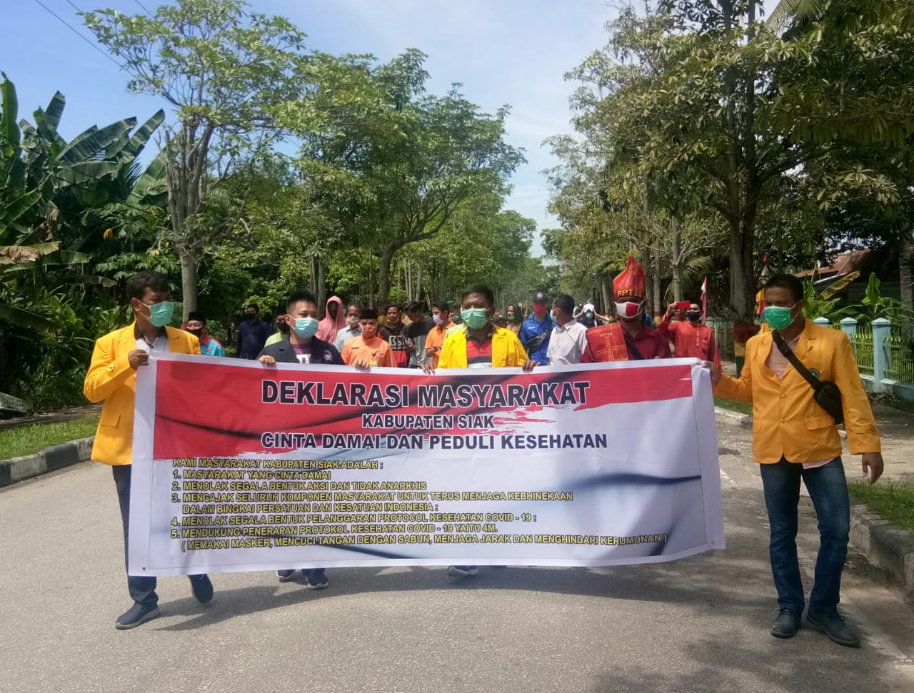SIAK – UPIKA Kecamatan Siak bersama puluhan Elemen masyarakat Kecamatan Siak gelar Deklarasi anti aksi anarkis dan peduli kesehatan Covd19. Kegiatan ini bertempat di Lapangan Bola Dusun II RT. 05 RW 02 Kampung Langkai Kecamatan Siak, Kabupaten Siak. Jum’at, (16/10/2020).