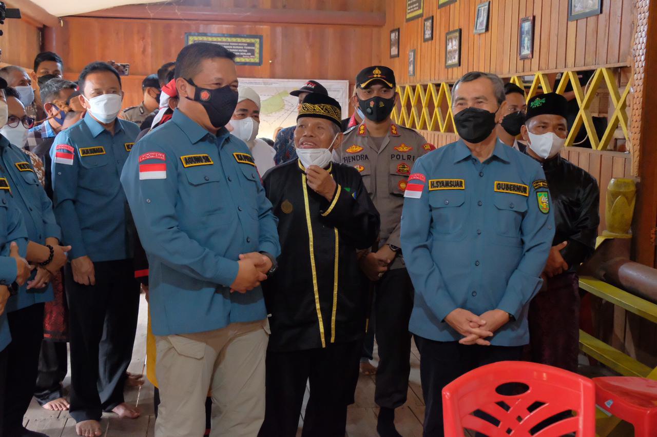 BENGKALIS – Kapolda Riau Irjen Agung Setia Imam Effendi bersama Gubernur Riau H Syamsuar Msi, Ketua DPRD Provinsi, H Yulisman, Kajati Riau DR Djaja Subagja serta Danrem 031/WB Brigjen TNI M Syech Ismed meninjau pelaksanaan vaksinasi bagi masyarakat tidak memiliki NIK di Batin Solapan Bengkalis Riau pada Sabtu sore (14/8/2021).