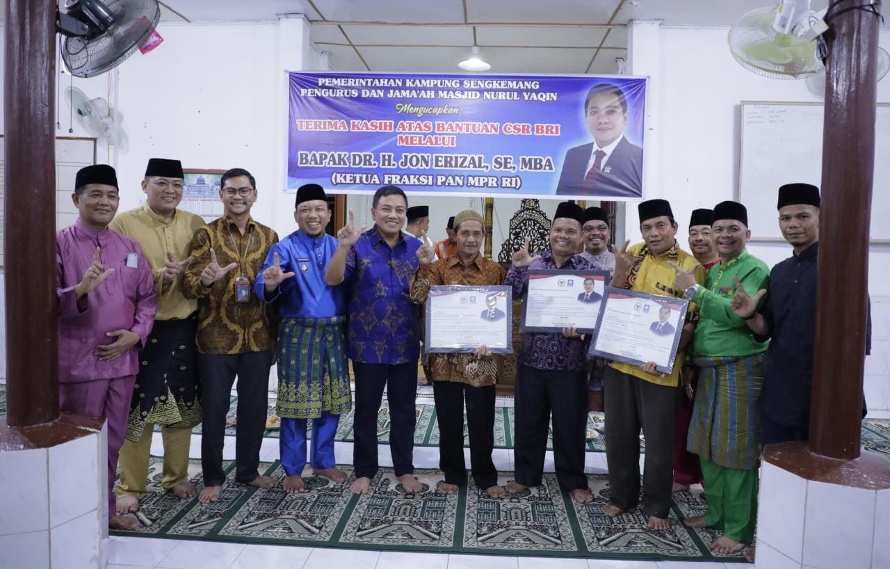 Bantuan tersebut merupakan bantuan dari CSR Bank Rakyat Indonesia (BRI), yang di inisiasi oleh Anggota MPR RI Dapil I Provinsi Riau Dr. H. Jon Erizal, SE, MBA, berupa bantuan renovasi masjid.