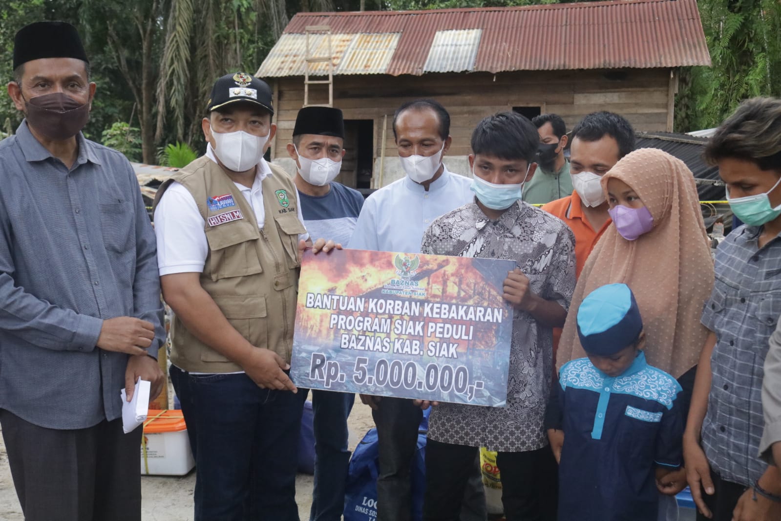 SIAK- Pemerintah daerah kabupaten siak dan baznas menyalurkan bantuan korban kebakaran yang menewaskan 2 orang penghuni rumah.Minggu(19/9/21) di simpang bakal kampung pinang sebatang.
