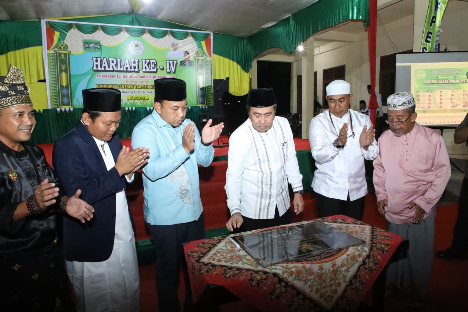 SIAK- Wakil Bupati Siak Husni Merza menghadiri peringatan hari lahir pondok Pesantren Tahfizh Nurul Furqon ke-4 yang berlangsung di Pondok Pesantren Tahfidz Nurul Furqon, kampung Rawang Air Putih, kecamatan Siak, Jumat (24/6/2022) malam.