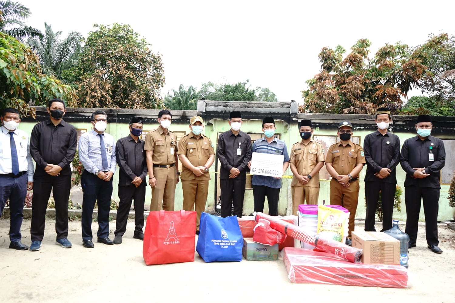 “Kami dari Pemerintah Kabupaten Siak juga memberikan bantuan melalui Dinas Sosial dalam bentuk bantuan logistik seperti baju sekolah, beras, minyak makan, peralatan dapur, juga kasur dan nanti akan ada bantuan lain,”kata dia.