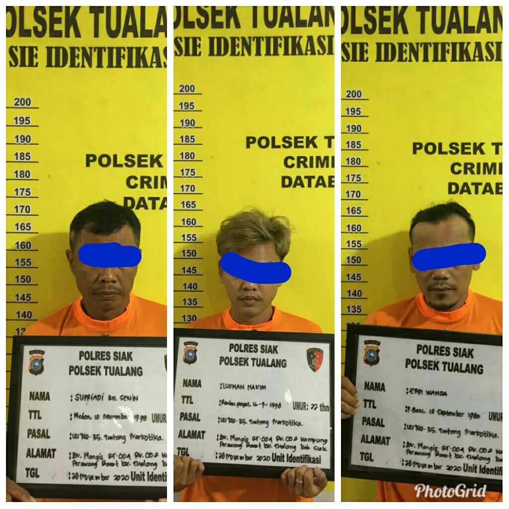 SIAK – Tim Opsnal Polsek Tualang Polres Siak menangkap 3 pelaku di duga melakukan tindak pidana penyalahgunaan gunaan narkotika jenis sabu sabu