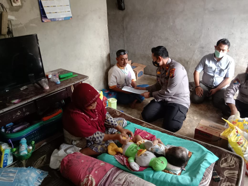 Untuk itu dipimpin langsung oleh Kapolsek Tualang pagi jumat sekitar pukul 10.00 Wib beberapa personel Polsek mengunjungi warga yang anaknya menderita Hidrosefalus tersebut dan menyerahkan bantuan.